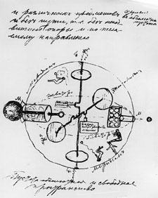 Korát megelőzve, folyékony hajtóanyagú rakétát fejlesztett ki, és a tengelye körül forgó (tömegvonzás miatt) űrállomás kivitelezését tervezte meg napenergia-gyűjtővel, panelekkel és tányérantennával… 1896-ban!!! Honnan szerezte a tudást a távbányászatról?